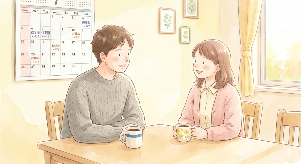 このままではいけないと思い、妻としっかり話し合いの場を持ちました。そこで決めた解決策が、**「子供の通院や自宅保育が必要な場合は、夫婦で交互に休みを取り、仕事と育児を完全に分離する」**というルールです。